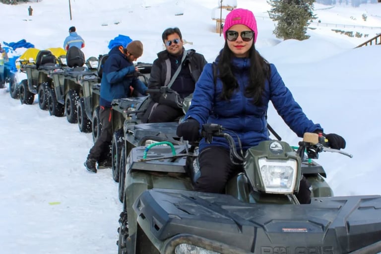 ATV off-roading in Kashmir is conducted on designated open terrains, meadow tracks, and controlled dirt paths. The activity focuses on short-distance recreational off-roading rather than long expedition routes, making it suitable for exploring varied landscapes such as alpine meadows, river flats, and forest-edge trails.