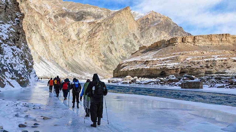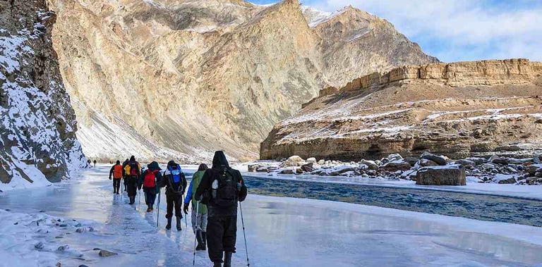 Winter Activities – Chadar Trek on the frozen Zanskar River (Jan–Feb).