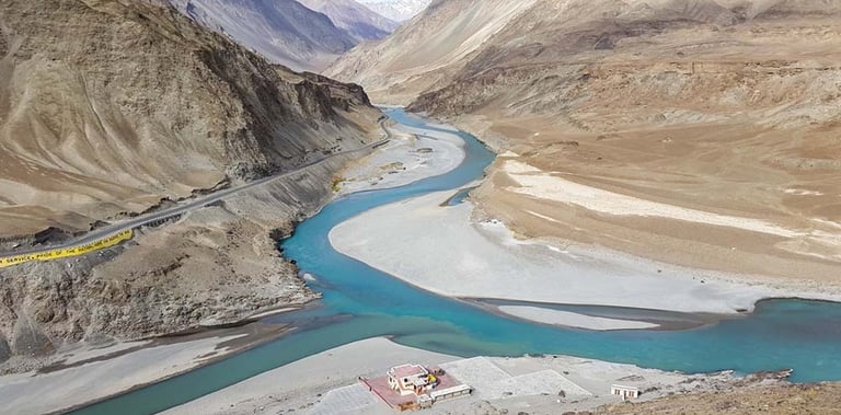 Sangam (Confluence of Indus & Zanskar, 35 km) – A natural wonder.
