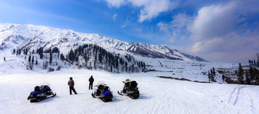 Gulmarg is India’s premier skiing destination and the country’s only place offering high-altitude, lift-assisted skiing. Located at 2,650 meters and rising to over 4,000 meters via the Gondola, Gulmarg is known for its natural powder snow, long descents, and varied terrain. It attracts both beginners and experienced skiers from India and abroad.